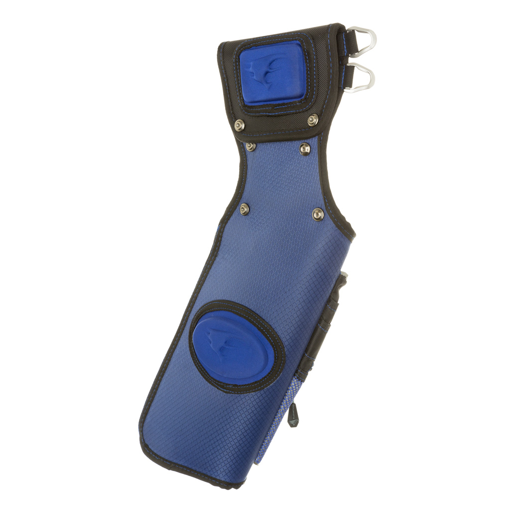 Field quiver featuring Diamond-Lock fabric and Comfort-Tec Pro padding. 3-Stage carbon tube arrow divider and carbon point plate provide added durability and performance. Large zippered storage compartment and secondary zippered mesh storage pockets have custom zippers and vented mesh outer compartments. Two accessory sleeves let the archer store their scorecard, pen, and kickstand.