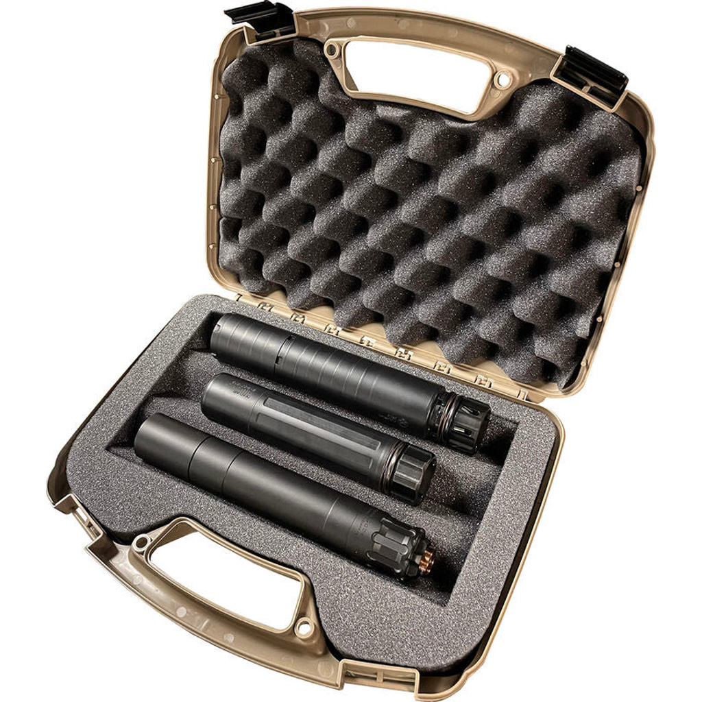 The MTM Suppressor Case is designed for ultimate suppressor protection, providing storage for up to two large suppressors or three smaller ones. Crafted from durable plastic with foam inserts, this case ensures your suppressors remain safe during transport or storage. Featuring a compact design measuring 9.5? x 6? with a 2-inch depth, the case offers a secure fit while remaining lightweight. It includes padlock provision for added security, making it an excellent choice for suppressor owners seeking a reliable storage solution.