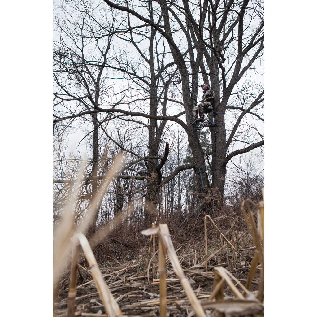 Featuring lightweight aluminum construction, a spacious 24″x30″ oversized grip platform with heavy duty cables and pressure relieving memory foam seat that forms to your body for ultimate cushioning support. Tree Digger teeth ensure wobble-free performance and the premium Teflon washers keep squeaks from ruining your hunt. Weight Capacity: 300 lbs., Stand Weight: 12 lbs.
