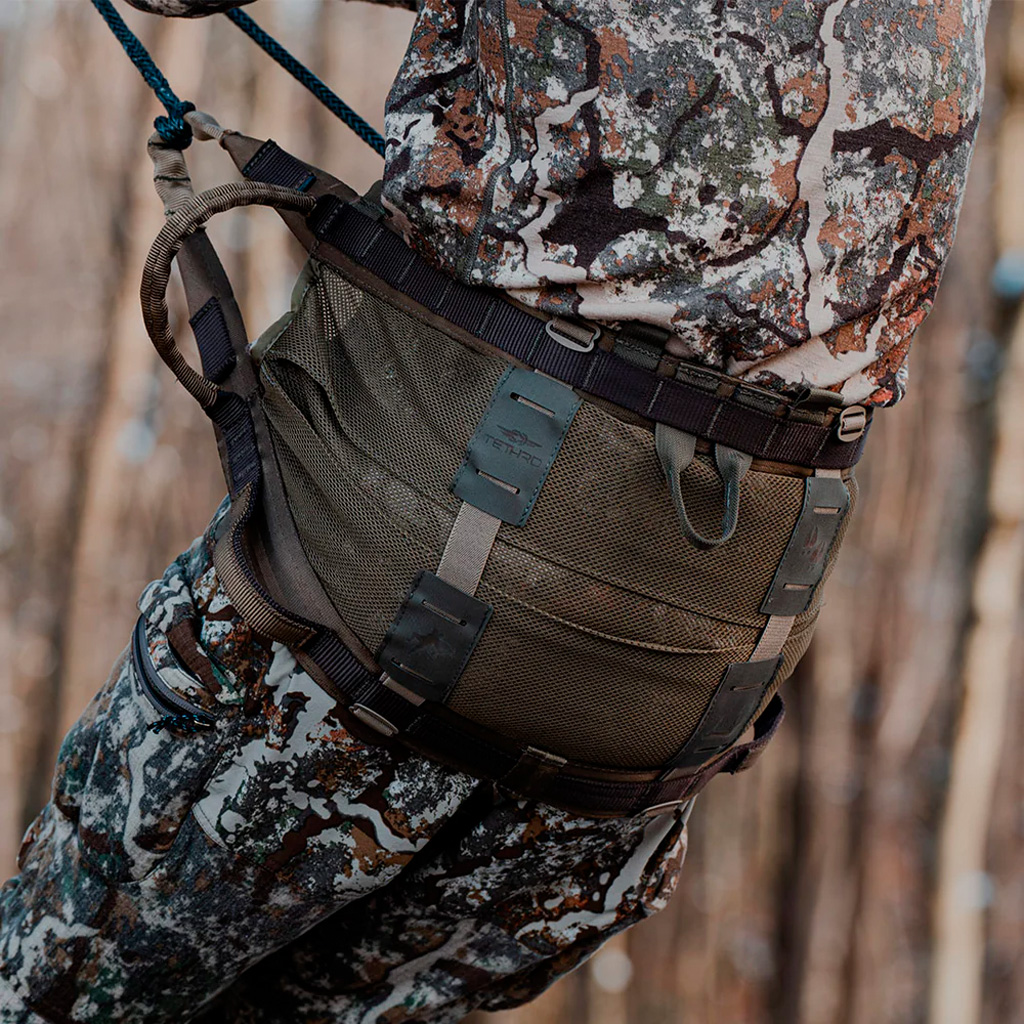 The Tethrd UltraLock SD Saddle offers a modular and comfortable hunting solution for hunters seeking ultimate versatility and convenience. Made in the USA, this saddle features the patented UtiliBridge with 40 inches of adjustability and Comfort Channels for a customizable fit. The expandable saddle body and UltraLock Links ensure the saddle remains secure while providing freedom of movement. Equipped with MOLLE bridge loops, oversized lineman loops, and large grab loops for enhanced functionality, the UltraLock SD is designed to improve your hunting experience. Available in Regular and XL sizes, it offers lightweight construction and ergonomic design to suit a variety of users.